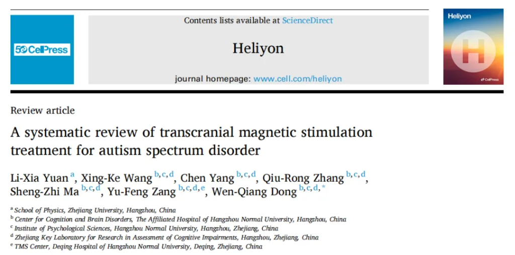 Yuan LX, Wang XK, Yang C, Zhang QR, Ma SZ, Zang YF, Dong WQ. A systematic review of transcranial magnetic stimulation treatment for autism spectrum disorder. Heliyon. 2024 May 31;10(11):e32251. doi: 10.1016/j.heliyon.2024.e32251. PMID: 38933955; PMCID: PMC11200348.