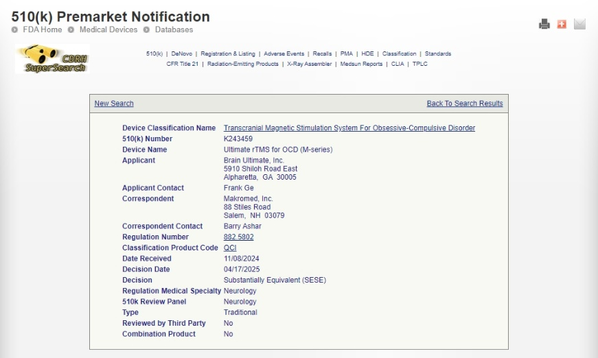 FDA clearance validates the safety and efficacy of our TMS system, making us a trusted provider of high-quality medical devices. This milestone reflects years of rigorous research, development, and collaboration with clinical experts to meet the highest regulatory standards.